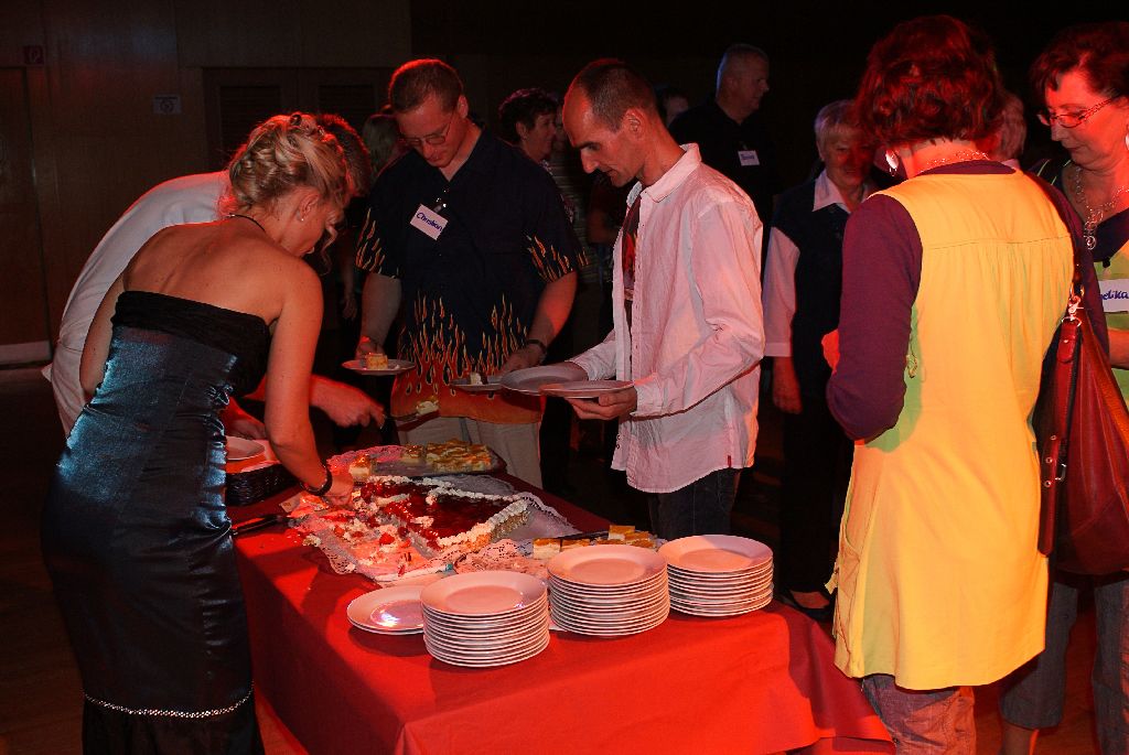 Schnell stand fest, dass wir das Zwillingstreffen am 18. Juni 2010 in der Pleißentalhalle mit einer Jubiläumsfeier, anlässlich des 25 jährigen Bestehens unseres Vereines, beginnen möchten. Herr OB Ralf Tittmann begrüßte mit uns die Zwillinge und hieß sie in Werdau herzlich willkommen. Zu jedem Geburtstag gehört auch eine Torte und so schnitten wir eine große Zwillingstorte in Herzform an. Höhepunkte an diesem Abend waren der Auftritt der Sängerin Onaje aus der Schweiz, die mit Ihrer Zwillingsschwester ihr Zwillingslied "3 Minuten" sang und unser "Zwillingspostamt", das Jubiläumspostkarten an Freunde der Zwillinge in aller Welt entgegennahm. Dieses Postamt gab es in den Anfangsjahren des Vereins traditionell im Stadtpark von Werdau.