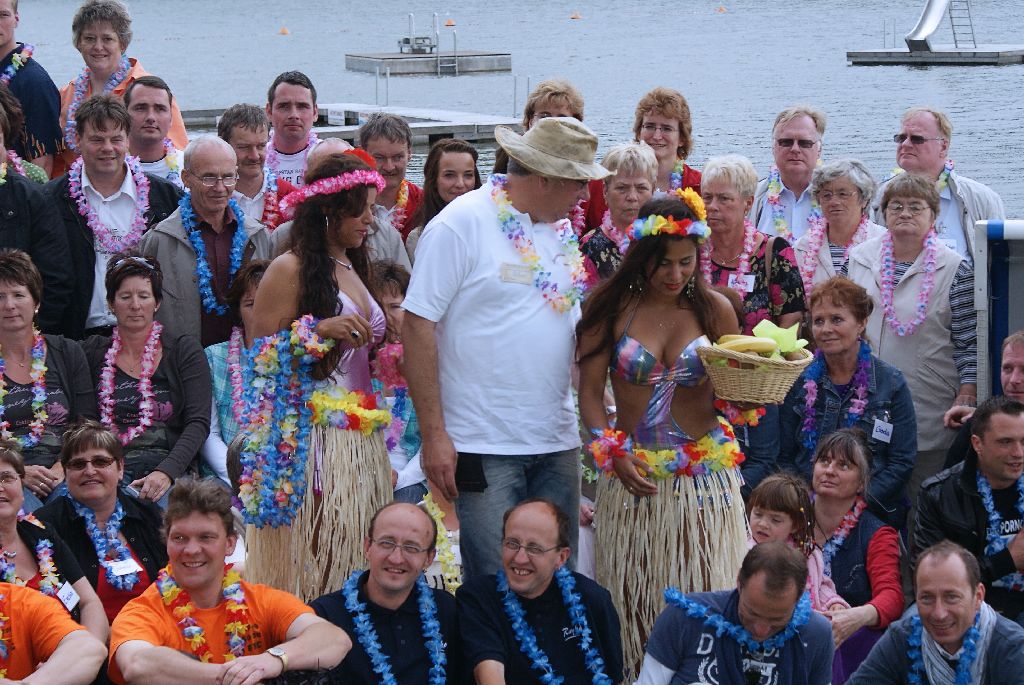 Am Samstagmorgen ging unsere Fahrt nach Zwickau in das "August-Horch-Museum", in dem wir mit einer Führung einen Einblick in die Welt der Entstehung des Automobiles bekamen. Ein sommerliches BBQ sorgte vor dem Museum dafür, dass die Zwillingsbäuche gefüllt wurden. Das Wetter gab uns am Nachmittag die Möglichkeit, alle Vorzüge der Koberbachtalsperre zu nutzen. Wir konnten gondeln, in den Strandkörben relaxen und im Freien mit Zwillingen und über Zwillinge reden, reden, reden... Neben brasilianischen Tänzerinnen drehte sich in dem nur für uns bereitgestellten Zelt alles um das Thema Karibik. Die Tanzgruppe "Sandana" aus Dresden rundete den Abend mit einer Salsa-Show und einem Salsa-Tanzkurs ab.