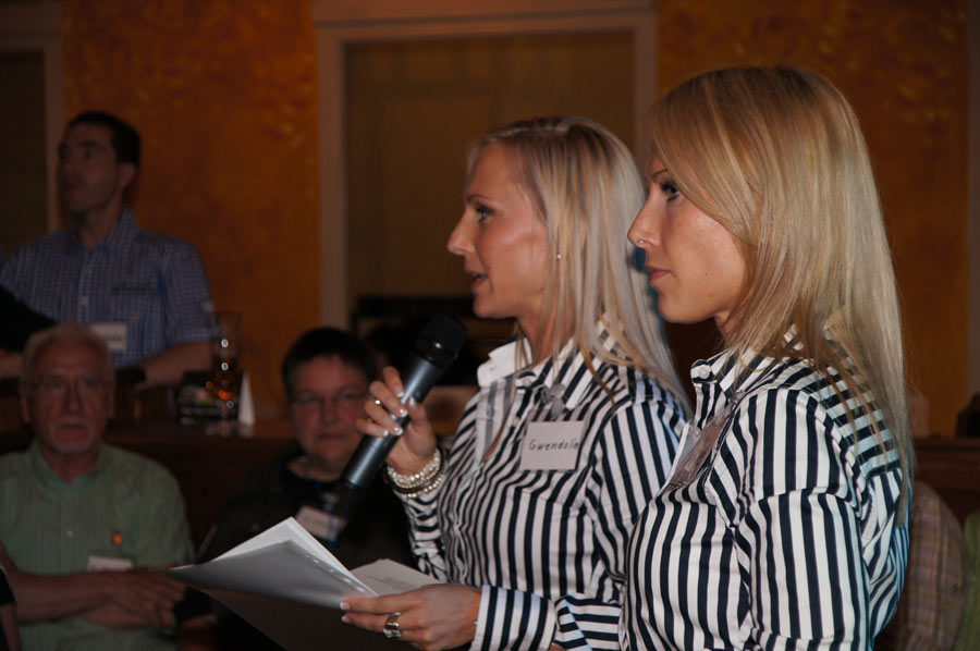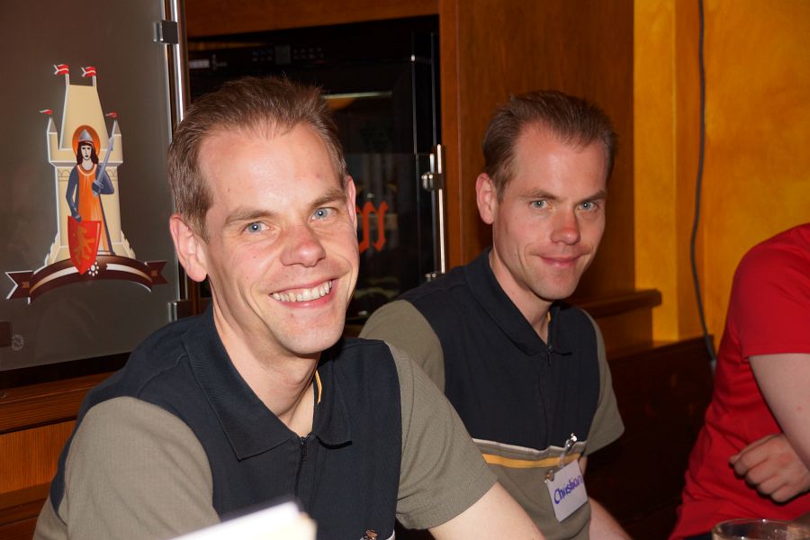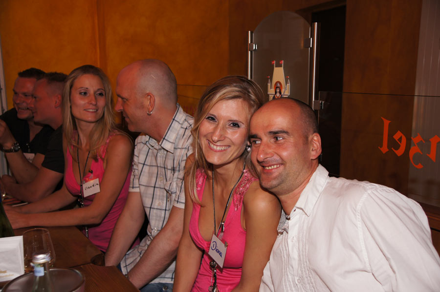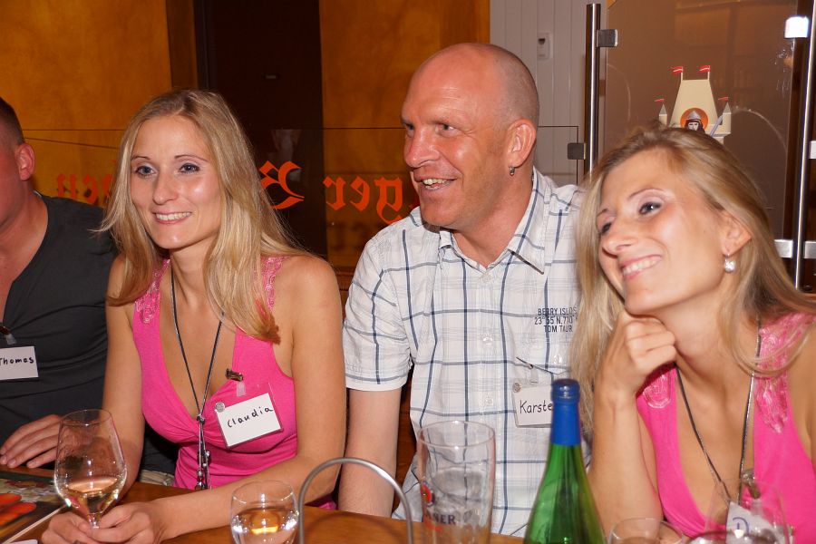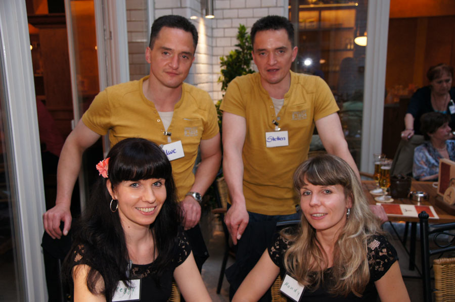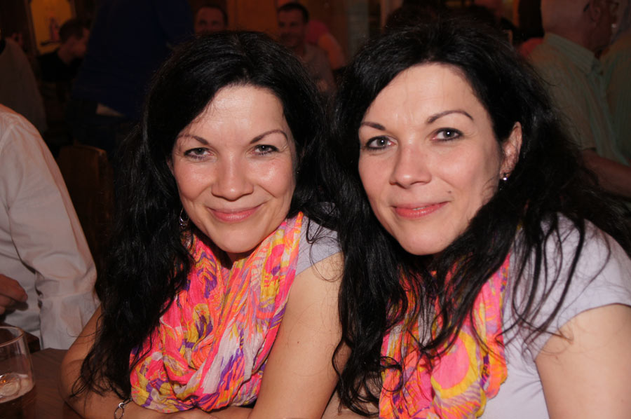 befand es sich fest in der Hand der Zwillinge. Alle freuten sich schon auf die Abendveranstaltung in den Wenzels Prager Bierstuben, gelegen am Ende des Barfußgässchens, der angesagtesten Party- und Gastronomiezone der Leipziger Innenstadt. Und dann ging es los. Nadine und Gwendolin eröffneten das Zwillingstreffen ganz offiziell und das fröhliche Partyvolk verlebte bei Speis und Trank, Gesprächen und Tanz einen kurzweiligen Abend.