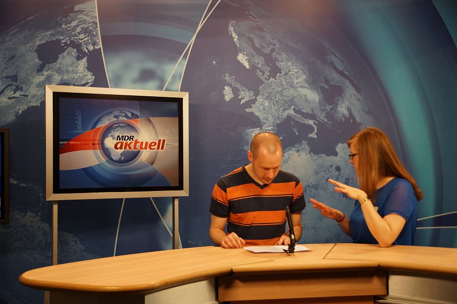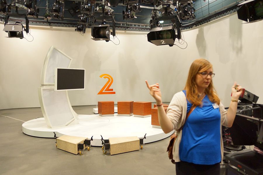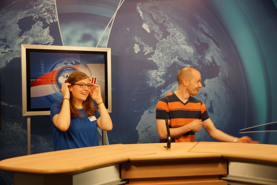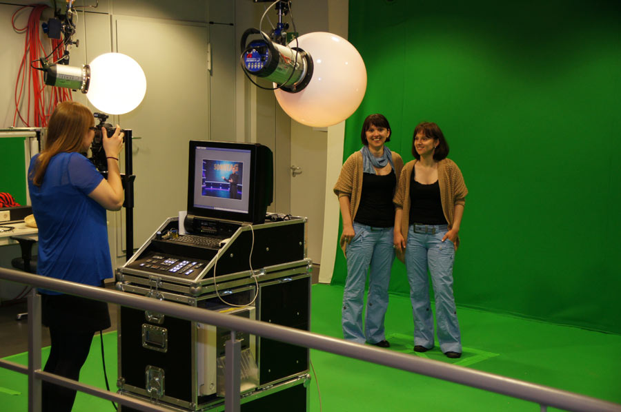 Die MDR Studiotour führte über das Gelände ins Produktionsgebäude, wo die Studios für Nachrichten und Shows sowie die Verwaltung untergebracht sind. Die Zwillinge bekamen das Geheimnis grüner Hintergrundwände gelüftet und erfuhren, wie fließend doch die Übergänge zwischen Illusion und Realität sind.