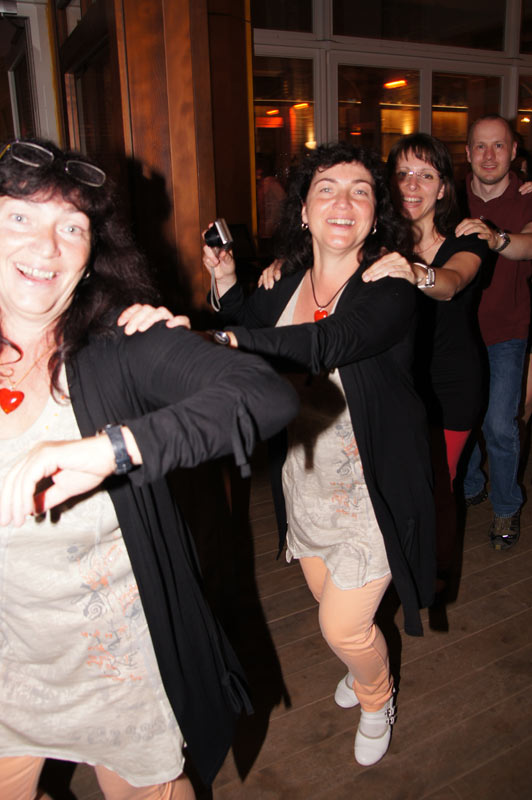 Auch der Nachmittag verlief abwechslungsreich. Einige besuchten im Zoo Tiger und Co., bestaunten im Grassimuseum neuestes Schuhdesign oder tauchten ein in das Getümmel des Stadtfestes, das wie bestellt just an diesem Wochenende die City erbeben ließ. Am Abend sah der Wenzel dann die Zwillinge wieder. Ein unermüdlicher DJ Waldi sorgte dafür, dass auch noch weit nach Mitternacht die Tanzfläche nicht leer blieb. Manfred aus Berlin, des Zwillingsclubs größter Zauberer, sorgte zwischenzeitlich mit seiner Showeinlage für ungläubiges Staunen.