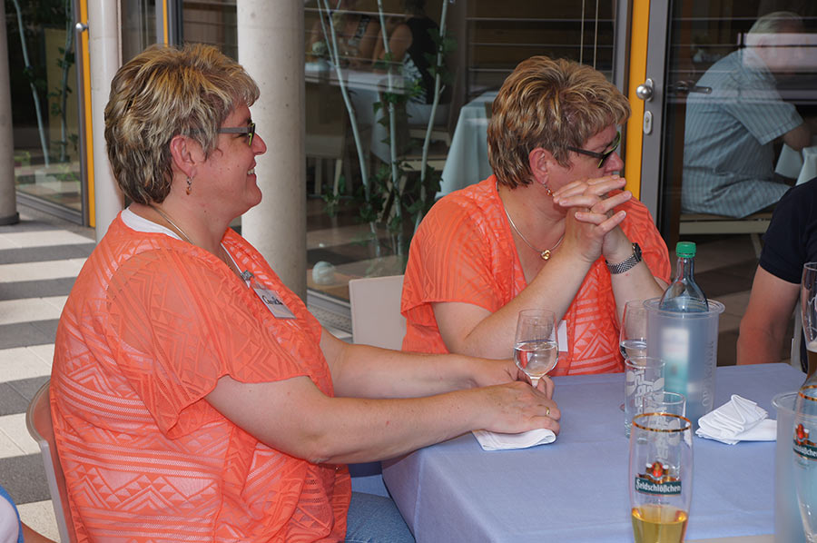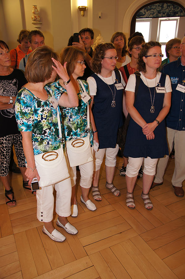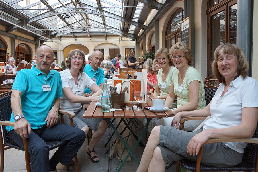 Fast alle Zwillinge übernachteten im nahegelegenen „Motel One“ und am nächsten Morgen wurden wir bereits von 3 Bussen erwartet, die uns nach Meißen in die Porzellanmanufaktur brachten. Über so viel Kunst, Liebe zum Detail und den Spagat zwischen Tradition und Moderne konnten wir nur staunen. Im Restaurant der Porzellanmanufaktur wurden wir auf echtem Meißner Porzellan fürstlich bewirtet und konnten auf der Sonnenterrasse die Eindrücke der Führung durch das Haus Revue passieren lassen. Am Nachmittag fuhren wir nach Dresden und hatten vor der Semperoper die perfekte Kulisse für unser Gruppenfoto!