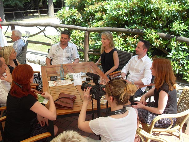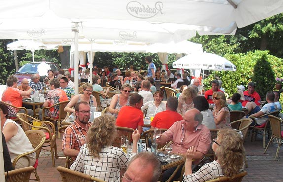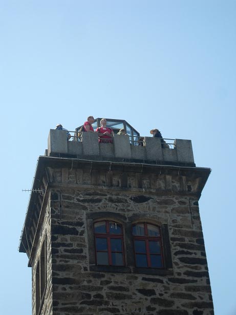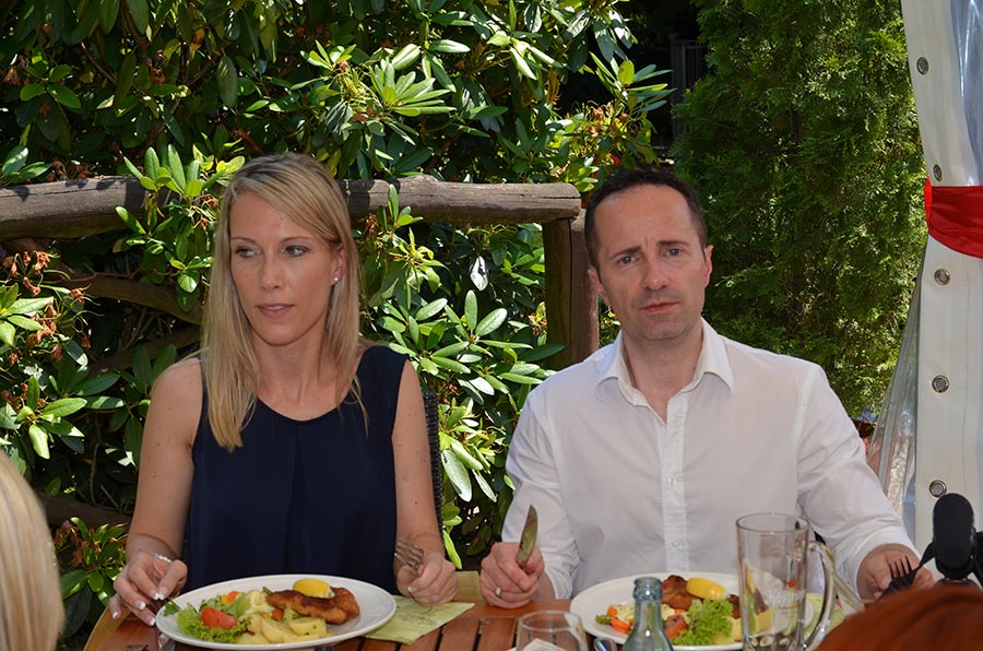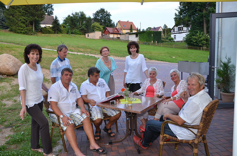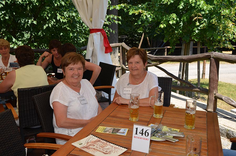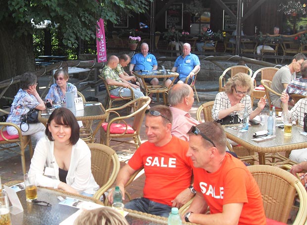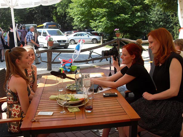 Langsam meldete sich der Mittagshunger. Gestillt wurde er auf dem großen Freisitz der Berggaststätte auf dem Butterberg bei Bischofswerda, zu dem uns die Busse gebracht hatten. Unter großen Sonnenschirmen gab es viel Gelegenheit, sich zu unterhalten und den Vormittag Revue passieren zu lassen.