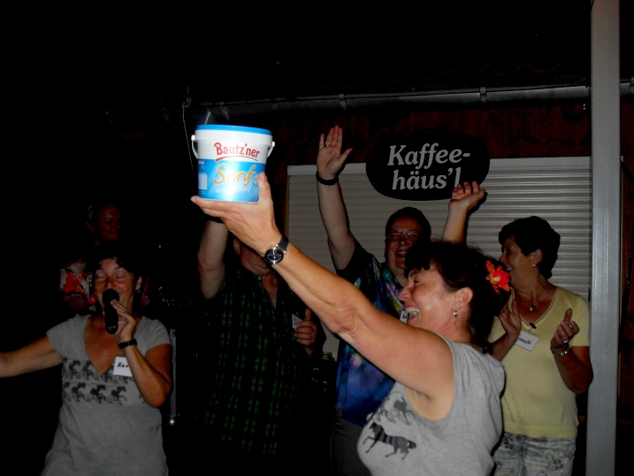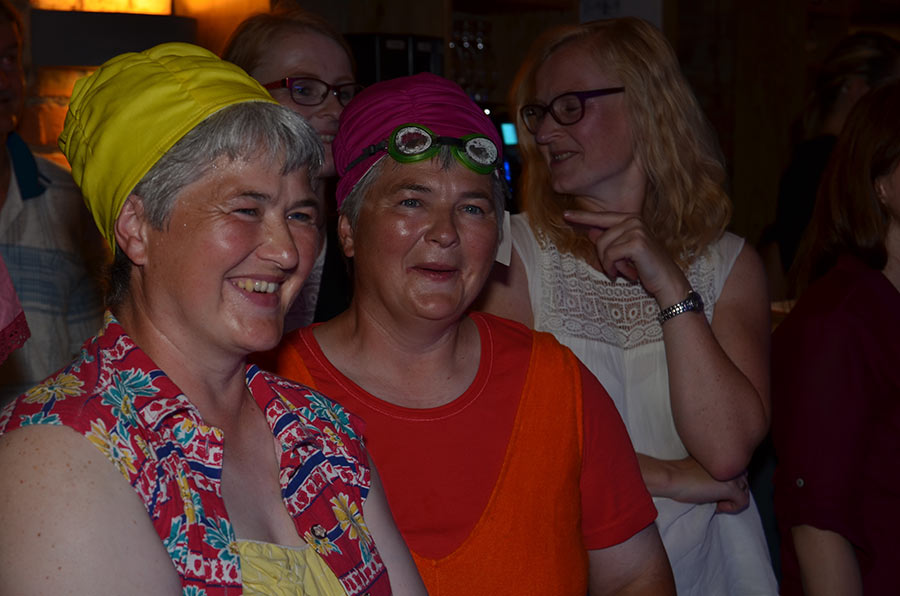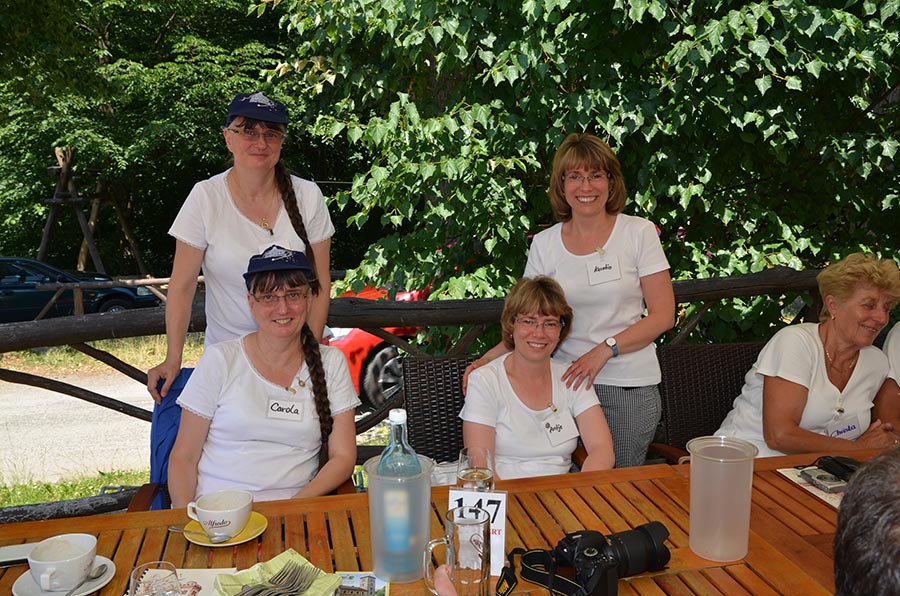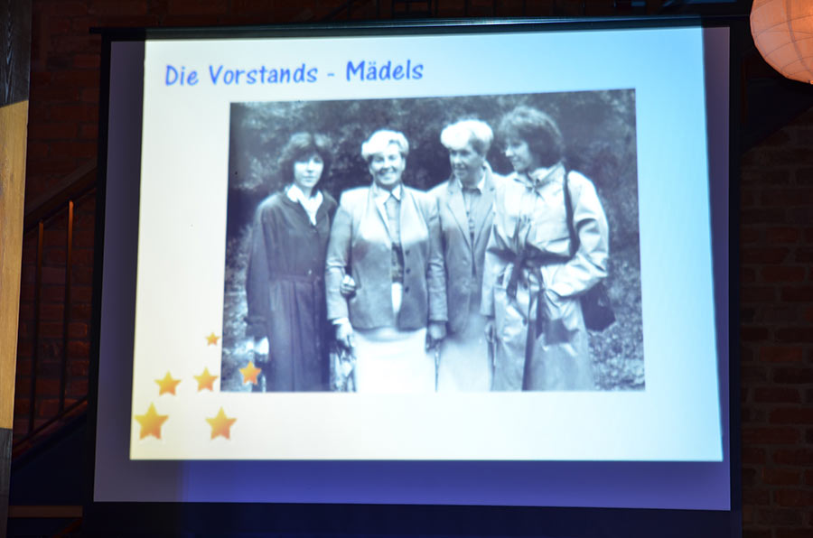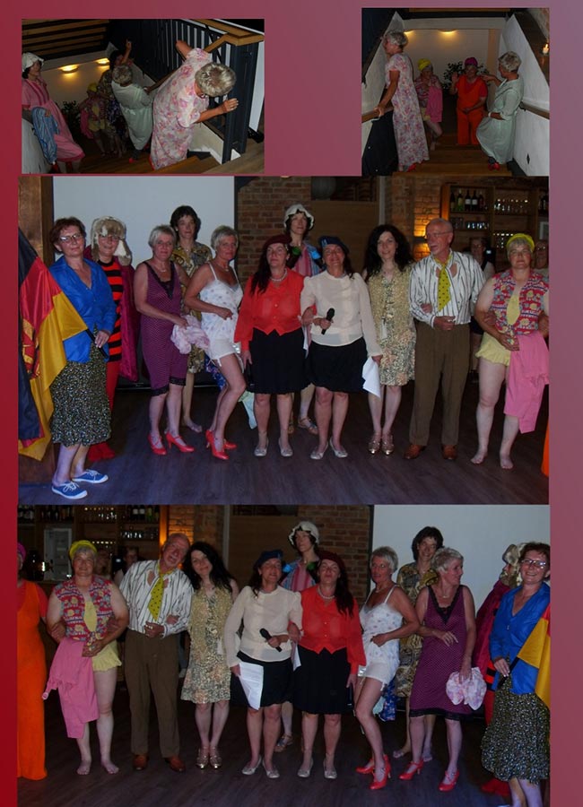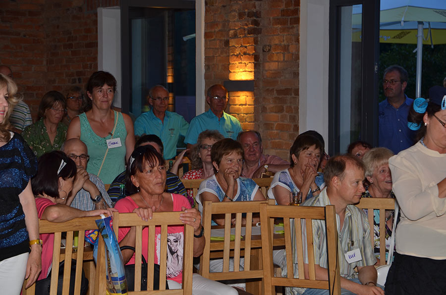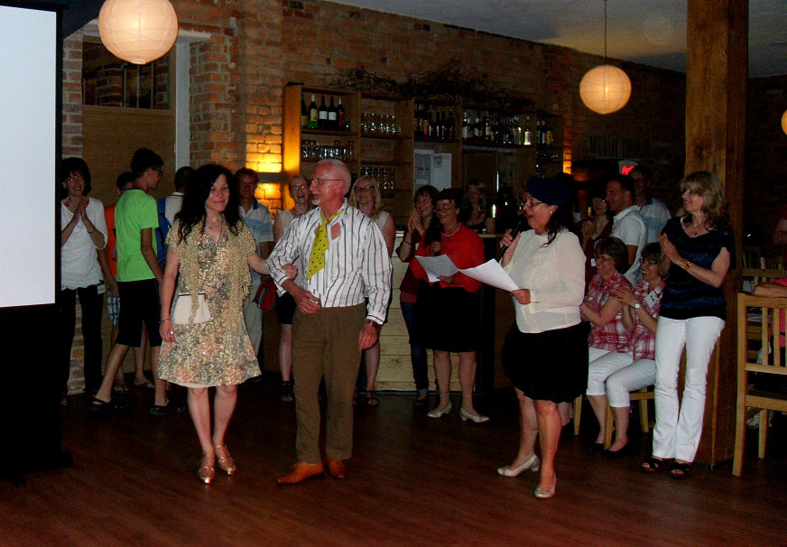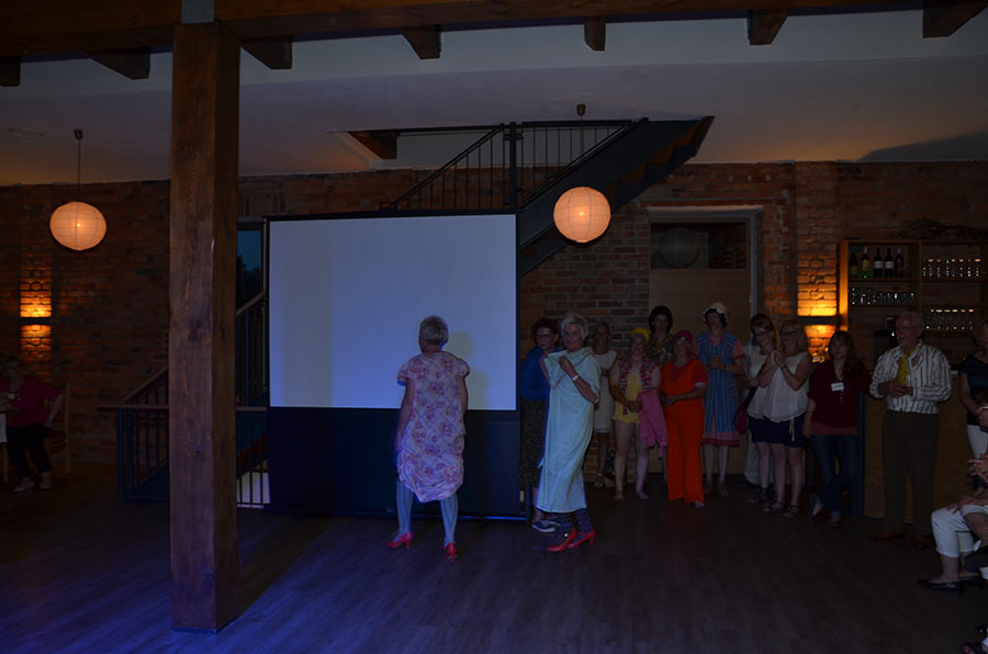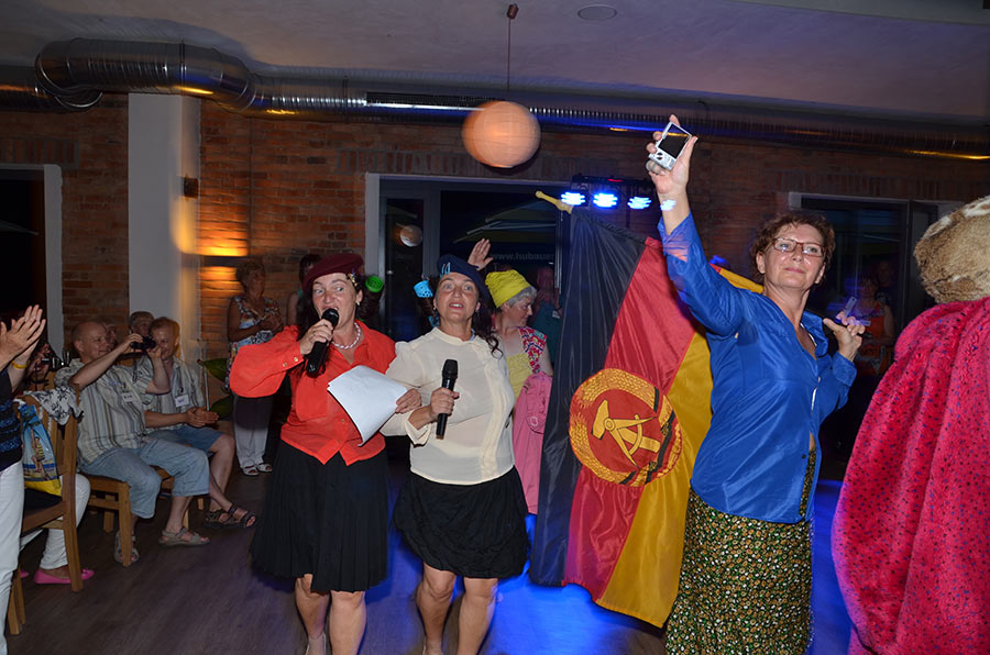 Am Abend stieg dann in Sohland die große Jubiläumsparty, wieder mit DJ Frank Hannas. Zahlreiche Einlagen sorgten für beste Unterhaltung. Uschi und Hanne hatten eine nostalgische DDR-Modenschau organisiert, bei der kaum ein Auge trocken blieb. Außerdem sahen wir Bilder aus der bewegten Vergangenheit unseres Vereins. Ganz besonders herzlich begrüßten die Zwillinge Renate Fischer, die Frau von Gerhard Fischer, einem der Gründer vom Zwillingsclub. Sie gab gern Auskunft darüber, wie alles begann.