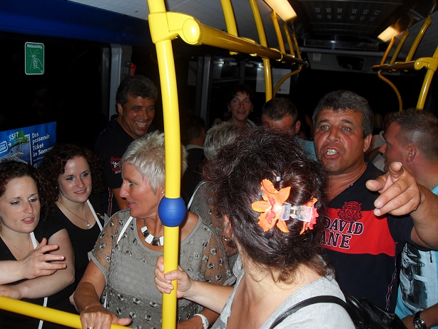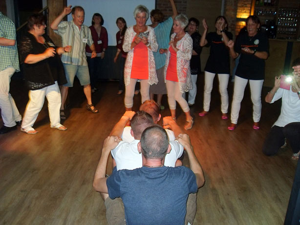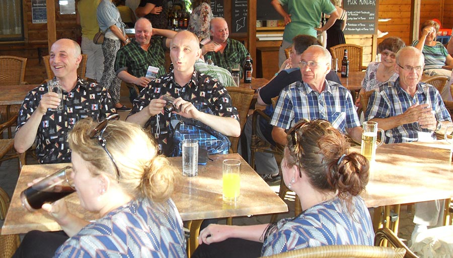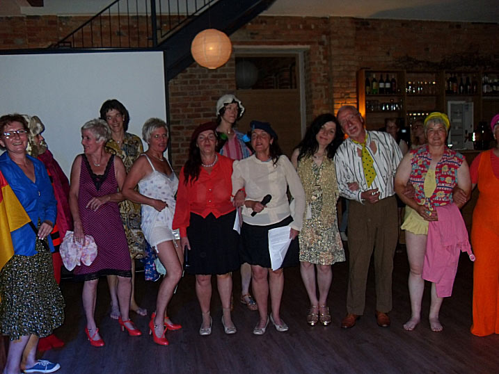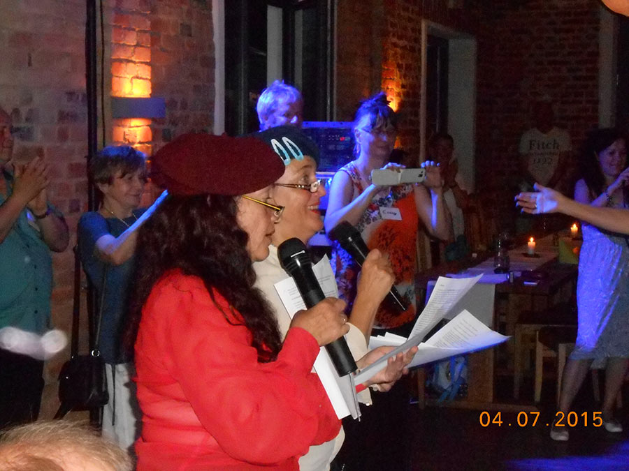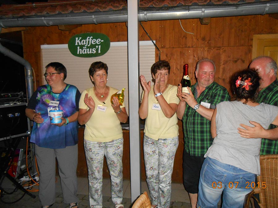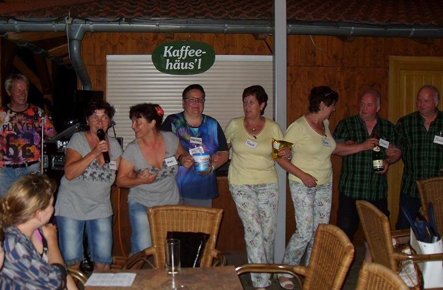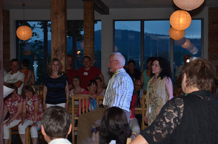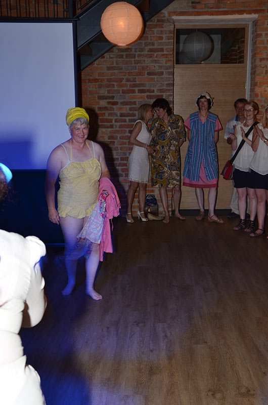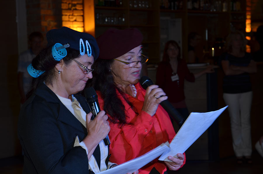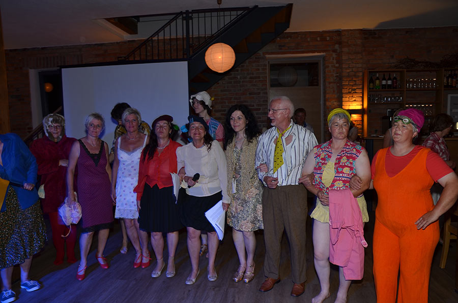Am Abend stieg dann in Sohland die große Jubiläumsparty, wieder mit DJ Frank Hannas. Zahlreiche Einlagen sorgten für beste Unterhaltung. Uschi und Hanne hatten eine nostalgische DDR-Modenschau organisiert, bei der kaum ein Auge trocken blieb. Außerdem sahen wir Bilder aus der bewegten Vergangenheit unseres Vereins. Ganz besonders herzlich begrüßten die Zwillinge Renate Fischer, die Frau von Gerhard Fischer, einem der Gründer vom Zwillingsclub. Sie gab gern Auskunft darüber, wie alles begann.