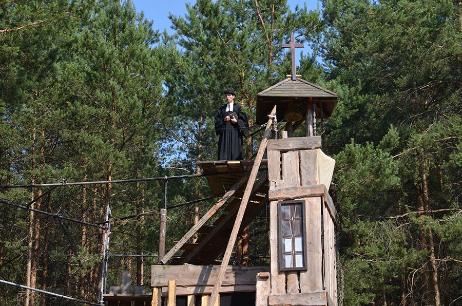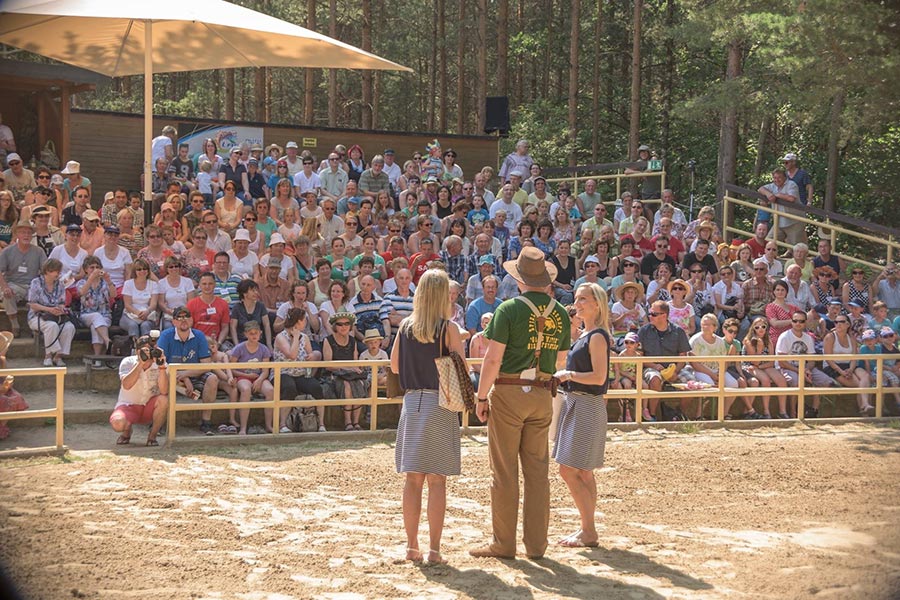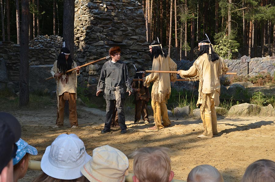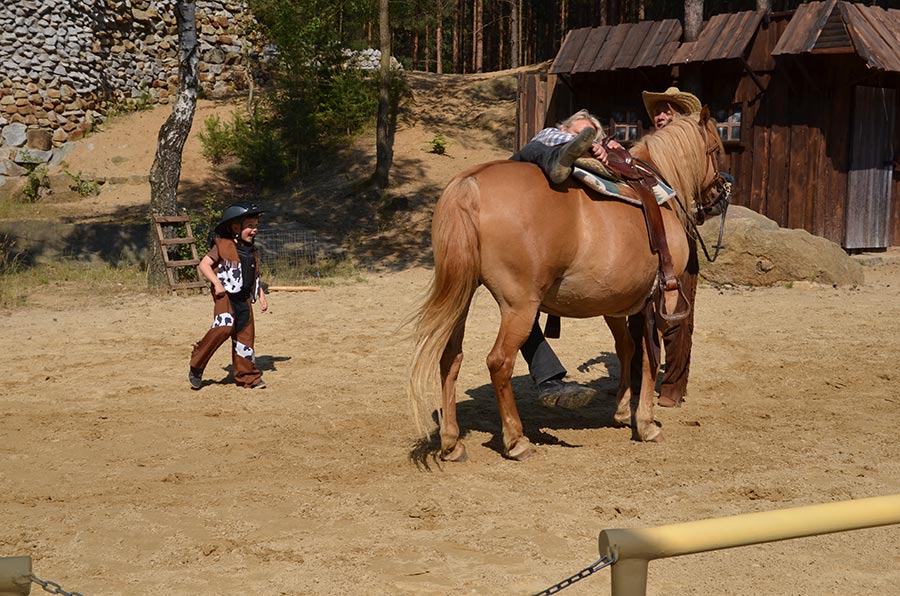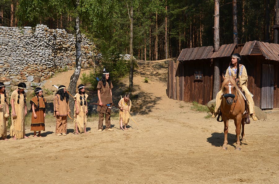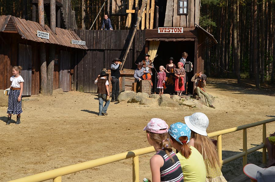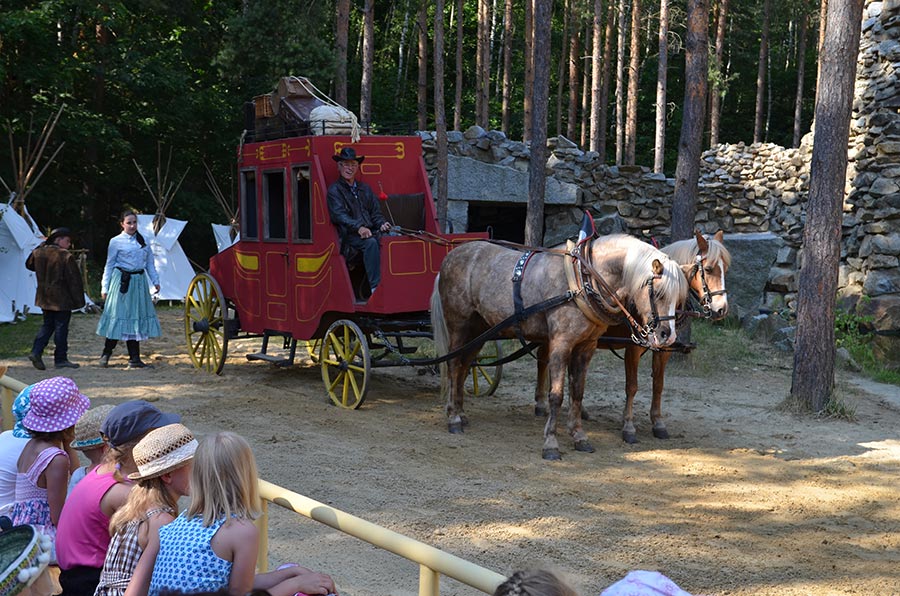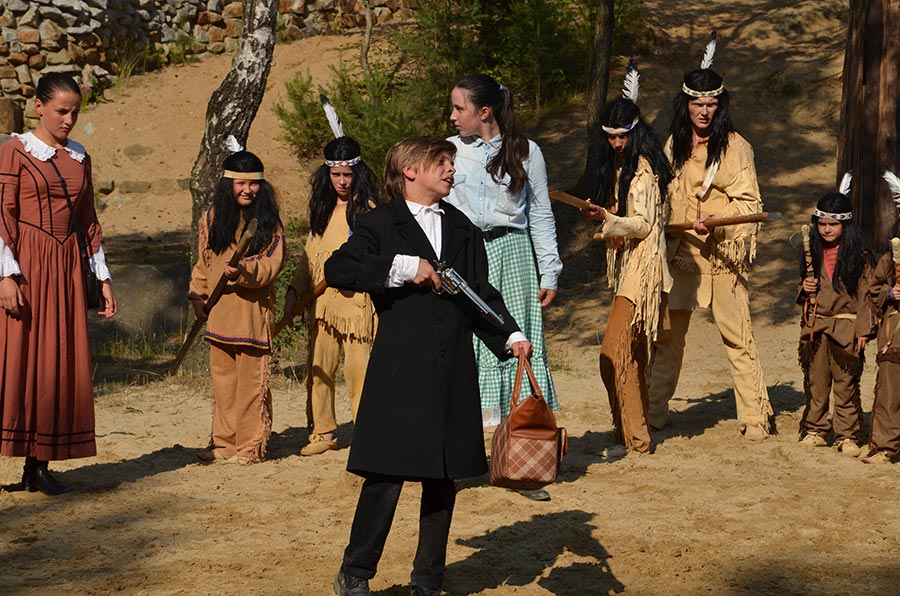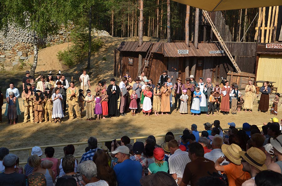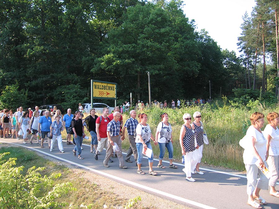 Nach der Mittagspause ging es mit den Bussen, nur einen Katzensprung weit entfernt, zur kleinen Waldbühne im Stadtwald von Bischofswerda. Dort konnten wir in einer Vorstellung der örtlichen Spielgemeinschaft „Gojko Mitic“ erleben, wie Old Shatterhand und Winnetou mit ihren Freunden das Böse besiegen. Die in der Hauptsache von Kindern gestaltete Aufführung ließ nichts vermissen, was einen guten Western ausmacht. Alle zeigten sich begeistert.