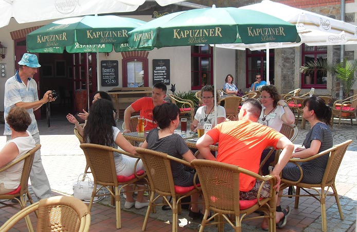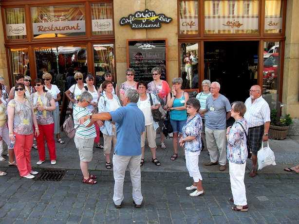 Der Samstagmorgen begann mit einem reichhaltigen Frühstück - genug Energie für einen erlebnisreichen Vormittag. Die Zwillinge teilten sich auf. Gruppe 1 spürte der Herkunft des berühmten Bautzener Senfs nach. Anschließend ging es für sie auf Entdeckungstour durch die schöne Altstadt. Ein Stadtführer vertraute den Teilnehmern die Geheimnisse so mancher Gebäude an.
