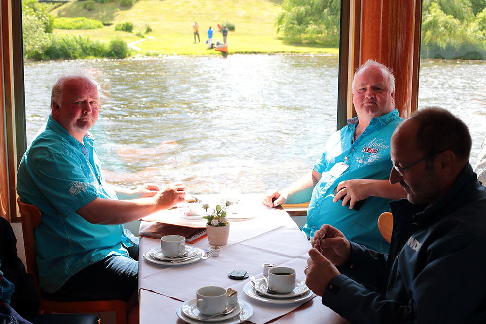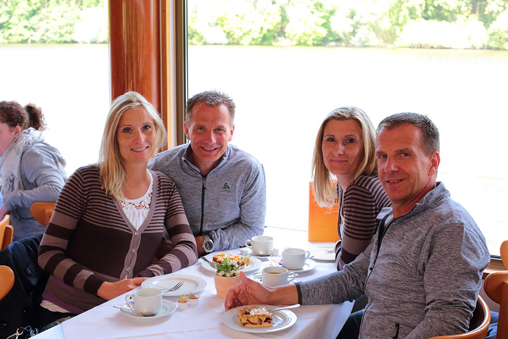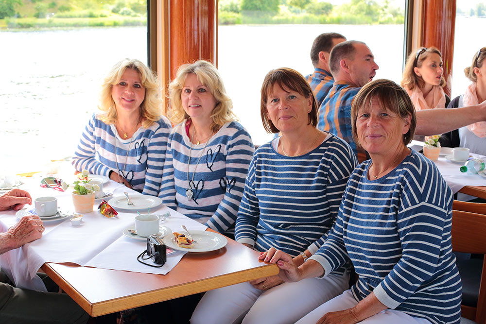 Am Nachmittag genossen wir das perfekte Wetter bei einer wunderschönen Rundfahrt mit Kaffetrinken auf der Havel und den Havelseen.