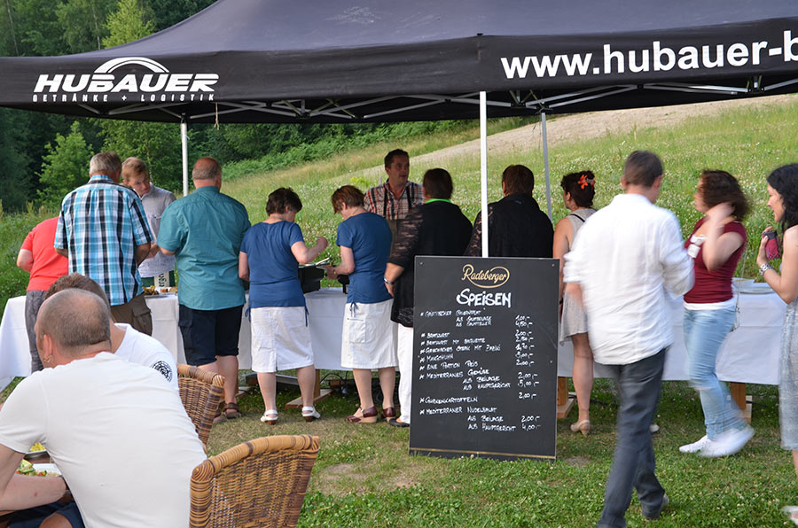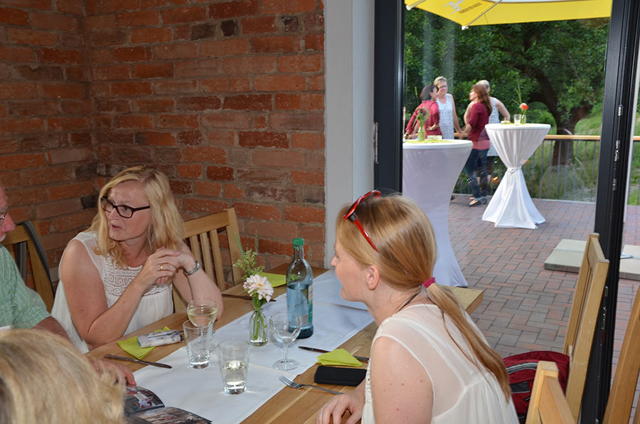 Langsam meldete sich der Mittagshunger. Gestillt wurde er auf dem großen Freisitz der Berggaststätte auf dem Butterberg bei Bischofswerda, zu dem uns die Busse gebracht hatten. Unter großen Sonnenschirmen gab es viel Gelegenheit, sich zu unterhalten und den Vormittag Revue passieren zu lassen.