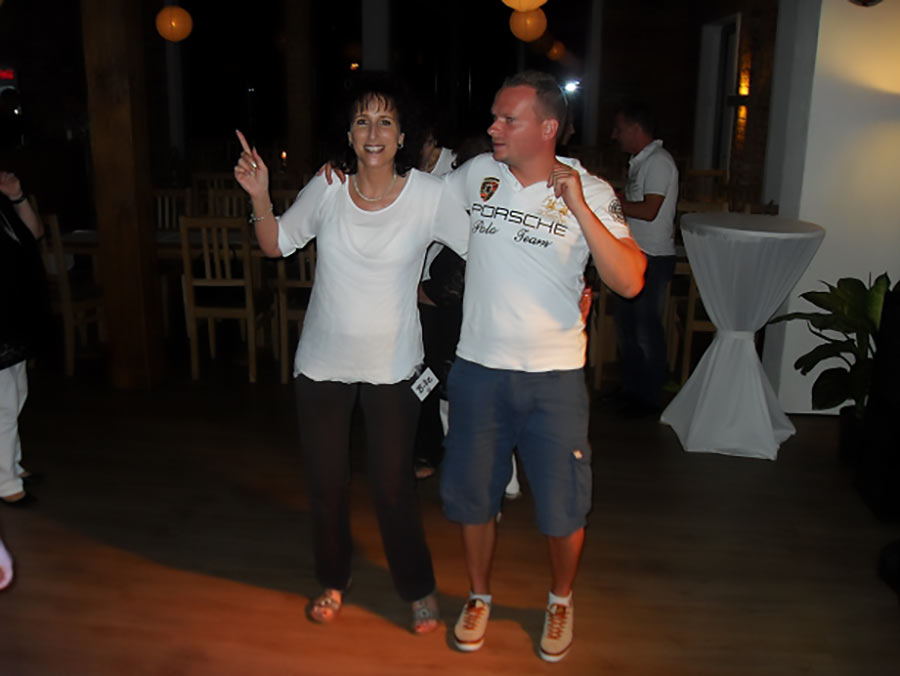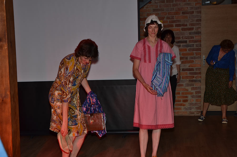 Am Abend stieg dann in Sohland die große Jubiläumsparty, wieder mit DJ Frank Hannas. Zahlreiche Einlagen sorgten für beste Unterhaltung. Uschi und Hanne hatten eine nostalgische DDR-Modenschau organisiert, bei der kaum ein Auge trocken blieb. Außerdem sahen wir Bilder aus der bewegten Vergangenheit unseres Vereins. Ganz besonders herzlich begrüßten die Zwillinge Renate Fischer, die Frau von Gerhard Fischer, einem der Gründer vom Zwillingsclub. Sie gab gern Auskunft darüber, wie alles begann.