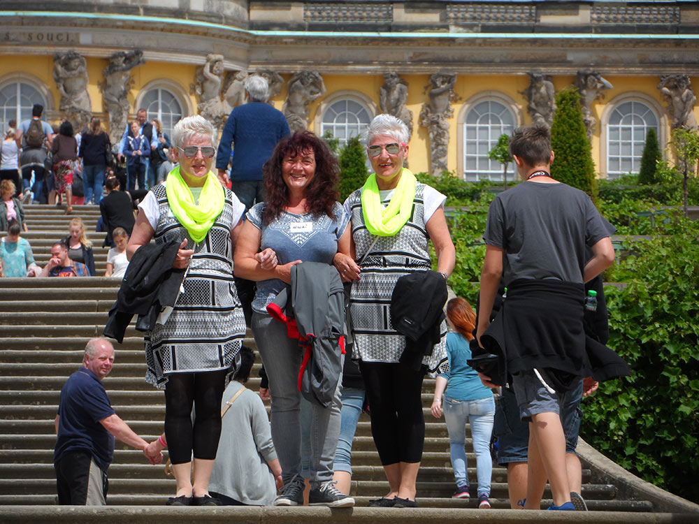 Unser Programm: Gemeinsames Abendessen am Freitag, Besichtigung Schloss Sanssouci am Samstag, Fahrt auf der Spree mit Kaffeetrinken, gemeinsames Abendessen, Gruppenfoto